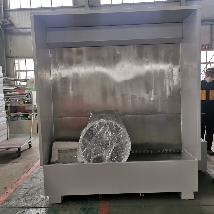 watergordijnkas met een afmeting van 2000 × 1100 × 2400 mm is ontworpen om lakpoeder op te vangen en geuren te filteren tijdens het spuitverven.